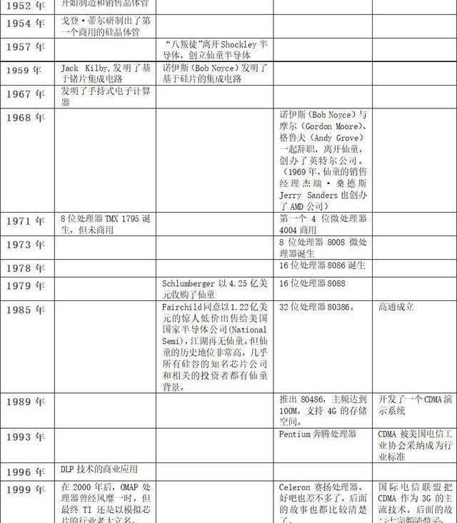 對于新世紀之前國外半導體發展,我們用幾個代表公司大概梳理了一下美國半導體發展的時間節點,回頭跟國內對應的時間可以做個對比。
