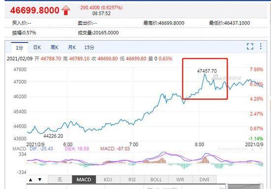 2月9日,比特幣一度突破47000美元,按照上海金交所實時數據,金價報380元/克,一枚比特幣大約能換一斤半黃金。