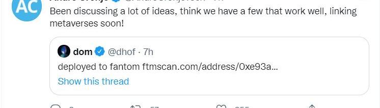 XRP/HKD-2.82%巴比特訊,9月15日,Loot項目創始人DomHofmann發推表示已在Fantom上部署合成Loot,隨后,YearnFinance創始人AndreCronje轉發推特稱:與Dom討論了很多想法,有一些是很不錯的,很快將進行元宇宙的鏈接。