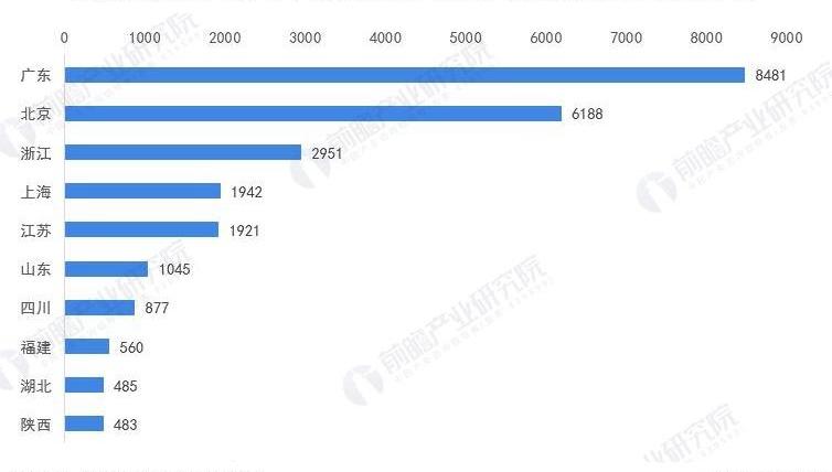 (3)中國區域專利申請分布:2018年起廣東一直位居榜首