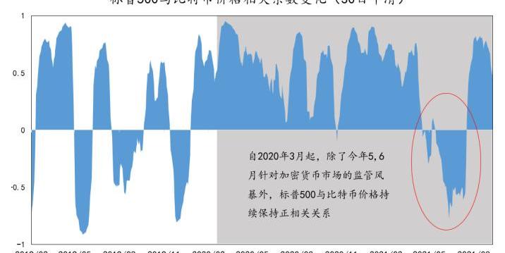 “本次暴跌肇始于港股,隨后傳播擴散到其他市場。”William向《區塊鏈日報》記者分析稱,隨著越來越多的投資者將比特幣納入資產配置池中,比特幣和傳統資本市場的相關性也逐步發生根本性變化,從數據上看,自2020年3月起,除了今年5、6月份針對加密貨幣市場的監管風暴外,標普500與比特幣價格持續保持正相關關系。