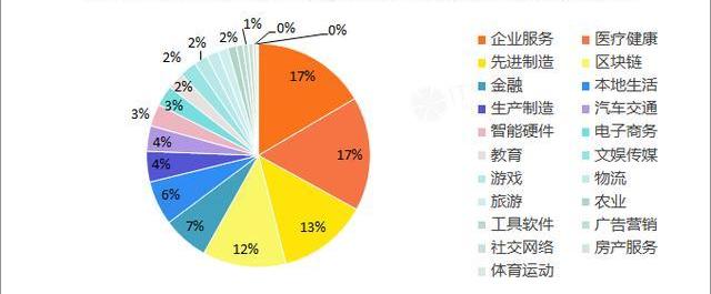 從行業分布來看,近2周企業服務、醫療健康行業以67起投資并購事件成為上周國內外最熱行業,占比17%;先進制造行業發生53起投資并購事件,位列第二,占比近13%;區塊鏈行業發生49起,位列第三,占比近12%。