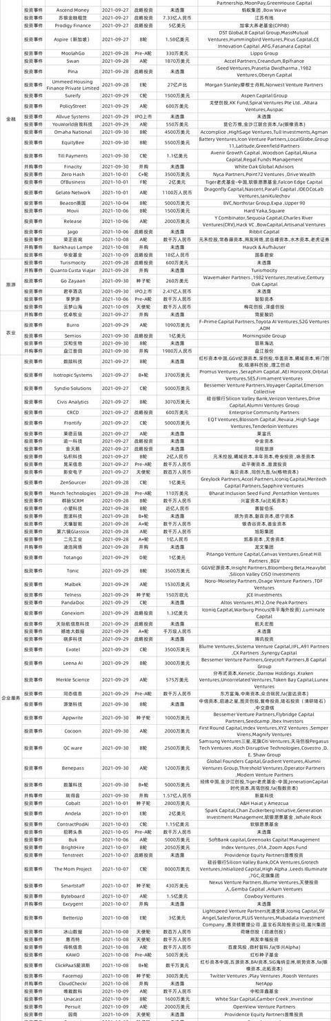 金天鵝獲同程藝龍戰略投資。金額未透露。金天鵝是一個中小酒店PMS提供商,把連鎖品牌的酒店集團或者是高星級的酒店的經驗,通過PMS的設置來做成“工具化、傻瓜化”,幫助酒店來提升住客的忠誠度和員工的忠誠度。弘積科技完成B輪融資弘積科技是一家應用交付產品和解決方案的提供商及服務商。全新的VADP平臺為用戶提供全面的虛擬化及云計算應用交付解決方案,同時我們致力于開發基于SDN的彈性管理平臺,為下一代虛擬化網路和云計算平臺提供智能管理。近日成功完成B輪近兩億元的融資,本輪融資由奇安投資、元禾重元、詠圣資本聯合領投,豐年資本及曦域資本跟投。IntraMirror完成4000萬美元B輪融資IntraMirror是一個奢侈品售賣平臺,提供以品牌為主導的體驗式購物,為奢侈品牌提供線上精品展示與商品銷售服務,平臺擁有箱包、腕表、服飾、藝術品等品類,此外還提供奢侈品鑒定及養護服務,旗下有奢品櫥窗等,隸屬于上海羽勒網絡科技有限公司。近日已完成4000萬美元B輪融資,由摯信資本獨家投資,光源資本擔任獨家財務顧問,本輪融資將主要用于品牌建設、用戶拓展以及技術投入等。智聽科技獲小米投資智聽科技是一家智能測聽驗配助聽器研發商,致力于在聽力檢測與助聽系統領域進行智能化開發業務,通過芯片技術和語音信號處理技術,研發出智能雙耳助聽器,廣泛服務于兒童、老人等聽力損失的用戶。近日公司發生工商變更,新增小米關聯公司瀚星創業投資有限公司為股東,同時公司注冊資本由104.5萬元人民幣增加至149.29萬元人民幣,增幅為42.86%。天元航材獲2億余元A輪融資天元航材是一家精細化工中間體產品生產商,是“氮化硼,PVB,增塑劑,防老劑,二茂鐵,聚乙烯醇縮丁醛等化工新材料產學研用孵化器”科技平臺型公司和精細化工中間體定制型科研及生產企業。廣泛應用于航空航天、軍工、民用等領域,并遠銷二十多個國家和地區。近日完成A輪融資,本輪融資是天元航材歷史上首次引入戰略機構投資者,由國內著名的軍工十佳投資機構之一華控基金領投,國科嘉和、國中創投、合江資本等國內一線投資機構跟投。必貝特完成戰略投資,融資近5億元必貝特醫藥是一家腫瘤小分子創新藥物研發商,致力于研發治療癌癥和其它嚴重疾病創新藥物研發,專注針對重大疾病的創新一類新藥研發和產業化,具備自主知識產權的創新藥物設計和研發的核心技術,具備從化學合成到新藥發現,從臨床前研究到臨床開發的條件。近日完成股權融資近5億元,盈科資本斥資2.5億元戰略領投本輪融資。工夫小戲獲騰訊融資工夫小戲是一家具有互聯網基因的影視內容創制公司。2016年獲得陳國富所創立的工夫影業天使投資。公司致力于開發獨具創意,腦洞大開的高品質喜劇內容。近日獲得騰訊投資。思納福醫療完成近兩億B輪融資思納福醫療是一家精細化分析醫療儀器研發商。隸屬于思納福醫療科技有限公司。近日宣布完成近兩億元B輪融資,由惠每資本領投,杏澤資本、黃埔醫藥基金跟投,老股東凱風創投、雅惠投資、荷塘資本持續加碼,一舉刷新了該賽道最大單筆融資的記錄。瓏瑞羽豐獲得B站投資瓏瑞羽豐是一家影視策劃服務商,致力于為用戶提供晚會、活動及節目制作策劃、舞臺設計;租賃服裝、舞臺照明設備等服務。近日發生工商變更,新增B站關聯公司上海幻電信息科技有限公司為股東,同時公司注冊資本由1000萬元人民幣增加至1124.2萬元人民幣,增幅為12.42%。易銳光電完成超億元Pre-B輪融資易銳光電是集研發、生產、銷售于一體的高科技創新企業,在光電領域具備垂直整合能力及核心技術創新能力,通過垂直整合上游芯片,中游混合集成,以及下游模塊及子系統的設計、開發和制造,打造基于硅的多元材料體系混合集成平臺。近日宣布完成超億元Pre-B輪融資,此輪融資的投資方包括了武岳峰資本,地方政府產業基金和國內一線晶圓流片平臺在內的產業投資方,方創資本為本次融資提供了財務顧問服務。此輪融資資金將用于擴建公司的集成封裝產線,研發投入以及補充流動資金。易銳光電此前曾獲得瑞斯康達、金浦投資、新慈投資等機構的投資。C咖完成1億人民幣A+輪融資C咖是一個功效護膚品品牌,專注于專業護膚品研發,主要從事護膚產品的研發、生產、銷售一體化服務。秉持“有料有趣”的極客護膚理念,堅持以“創新、與消費者共創、中國造”為品牌價值,致力于做到有料有效,旨在改善消費者肌膚問題,推出小罐精華級涂抹面膜——小罐膜。已完成1億人民幣A+輪融資,由順為資本、百麗消費基金聯合領投,老股東元璟資本、不二資本繼續加碼,棕櫚資本擔任本輪獨家財務顧問。長勝科技宣布完成數億元C1輪融資長勝紡織是一家冷轉移印花技術研發商,專注于從事紡織品加工技術的研發與設計,旗下主要產品包括冷轉移印花設備、冷轉移印花耗材、冷熱轉移印花制品等。此外,還提供定制加工。其產品線涵蓋了智能染印設備、生產材料、供應鏈服務等內容。近日宣布完成數億元C1輪融資,本輪融資由紐爾利資本領投,指數資本擔任獨家財務顧問。據悉,本輪融資資金將用于建設全球化國際品牌供應鏈。酷哇機器人完成C輪2.5億美元融資酷哇機器人是國內智能駕駛領域的新銳企業,專注于城市動態場景下的智能駕駛技術,將技術應用于垂直場景作業。公司與各行業龍