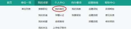 3.注冊后登錄,點擊“個人中心”“我的簡歷”開始填寫,*號為必填項,每一項填寫完畢后點擊“保存”;