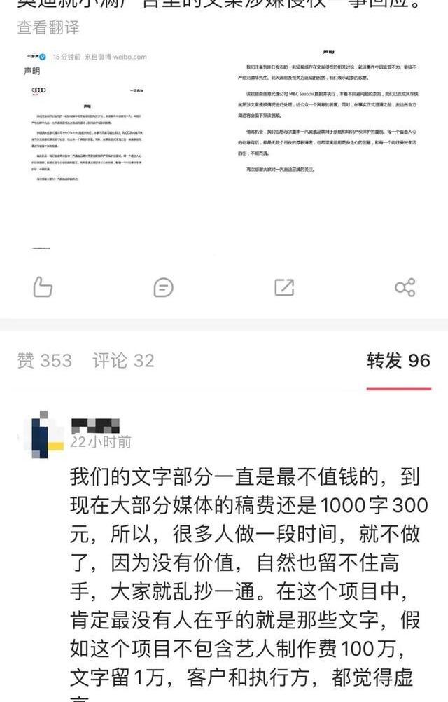 另一方面,這次抄襲居然是逐字逐句的“原版復刻”,這意味著視頻發布前,相關人員可能沒有做過任何查詢工作。這么大的廣告案子,像素級地抄襲一個KOL,屬實離譜,用網友的話說就是“哪怕改幾個字也好”,當然那可能就是洗稿了。