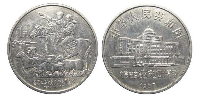 內蒙古成立40周年紀念幣,發行于1987年,這枚幣背面是牧民放牧的場景,馬背上的青年男女牧羊人、豐美的草場、肥壯的羊群,讓人馬上能感受到內蒙古自治區特有的民族人文景觀。