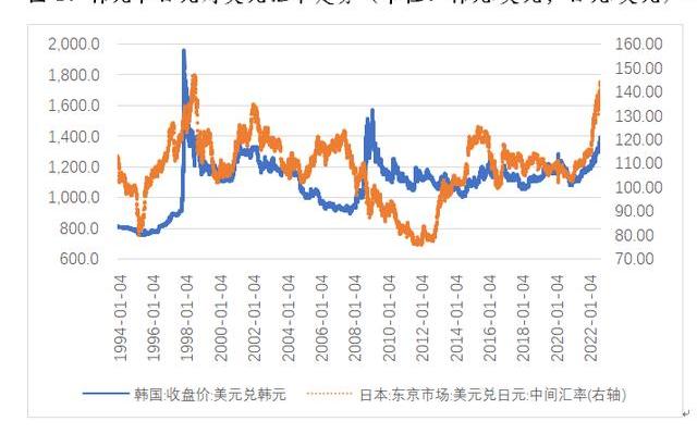 今年,主要亞洲貨幣中,日元與韓元成為“雙子星”。到9月16日,日元對美元匯率累計下跌19.5%,跌至1998年來新低;韓元匯率下跌14.2%,也跌至2009年來新低。韓國會因為韓元貶值再現二十五年前的金融危機嗎?本文擬就此進行探討。