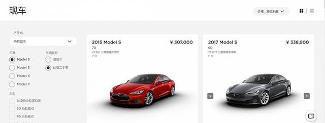 特斯拉官方認證二手車交易頁面,截圖自特斯拉官網