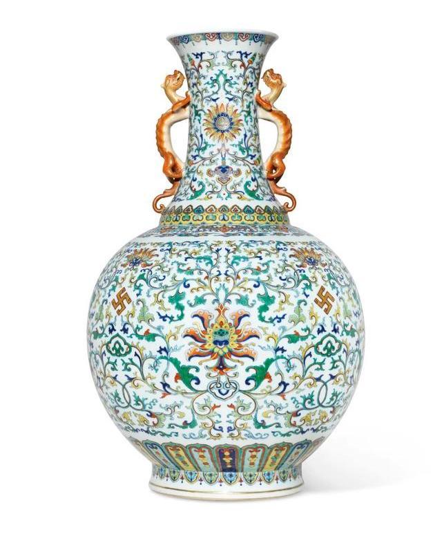 清乾隆斗彩萬福慶壽雙螭龍耳大瓶