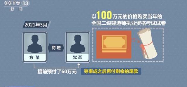 根據檢察機關的指控,早在2021年3月,方某就和黨某商定,以100萬元的價格購買當年的全國二級建造師執業資格考試試卷,并且方某提前預付了60萬元給黨某,等事成之后再付剩余的尾款。