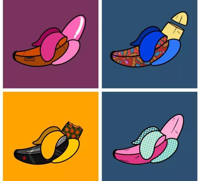 上圖:Bones&Bananas系列中的幾個NFT香蕉形象?