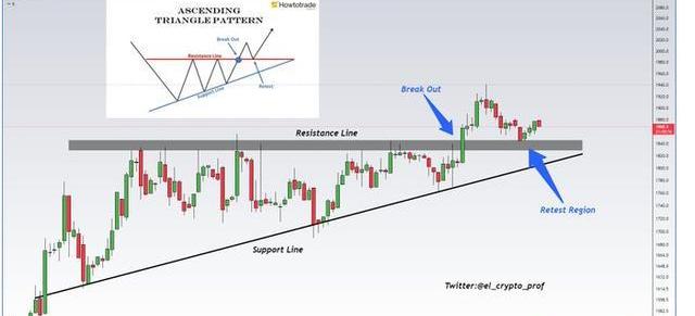 在Twitter上,化名elcryptoprof的加密貨幣分析師預測,如果以太坊突破2,000美元,可能會引發山寨幣反彈。他指出,技術分析表明以太坊在短期內看起來不錯,目前正在重新測試教科書式的上升三角形模式。如果突破成功,它可能會將以太坊推高至2,000美元以上。