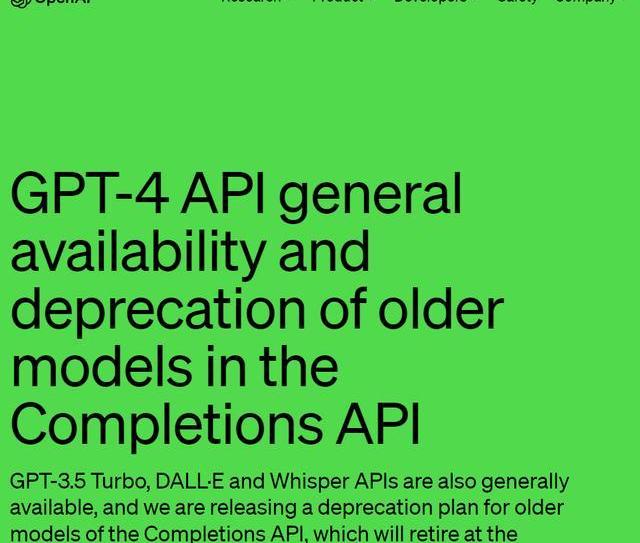 此外,OpenAI還宣布了一些棄用模型和全新的版本。例如,davinci-instruct-beta、gpt-curie-instruct-beta、text-ada-001、text-babbage-001、text-curie-001、text-davinci-001、text-davinci-002和text-davinci-003由gpt-3.5-turbo-instruct替代。
