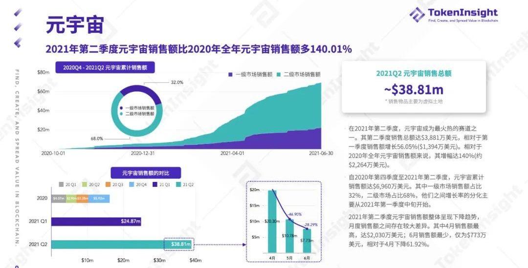 截至7月,NFT市場總銷售額達到10億美金;以Axie為代表的Playtoearn類GameFi項目極度火爆,CryptoBlades甚至在一個月內漲了100倍;從銷售額來看,Bayc比CryptoPunks更受歡迎;NBATopshot較Q1銷售額下降40%;結論是:NFT市場仍然處于非常早期的階段,小意味著野蠻生長,意味著機會,也意味著騙局。請各位讀者朋友擦亮眼睛。本文將以圖片形式展示,橫屏閱讀體驗更佳。或者文末點擊閱讀全文前往TokenInsight官網查看。