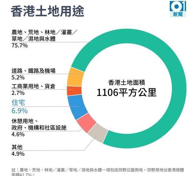 有這么一種說法,說香港地少人多,樓價才如此昂貴?如果你相信這套說辭,那就太天真了。香港土地面積1106.34平方公里,常住人口730萬,人口密度只有深圳的60%。香港還有大片的農地、荒地、林地、水塘。住宅用地只占香港整體面積的6.9%左右;這其中的3%還是被撥作興建低密度的鄉村屋,真正用作高密度市區住宅發展土地不過3.8%。既然不缺土地,那香港高房價的根結在哪呢?