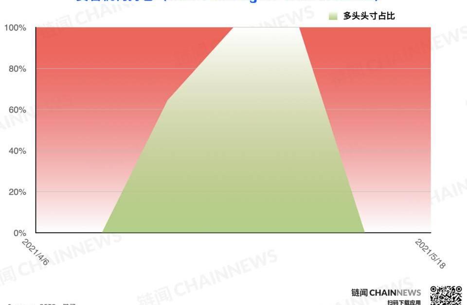 散戶持倉方面,多頭頭寸自1580張上漲至2988張,空頭頭寸自607張同步上漲至2525張。散戶在微型比特幣期貨上的空頭增持幅度同樣非常明顯,上一統計周期內的多空雙向持倉間巨大的差值基本被抹平,散戶在5·19大跌前整體的偏空判斷明確,對于本輪市場風險的敏銳度相當值得贊許。