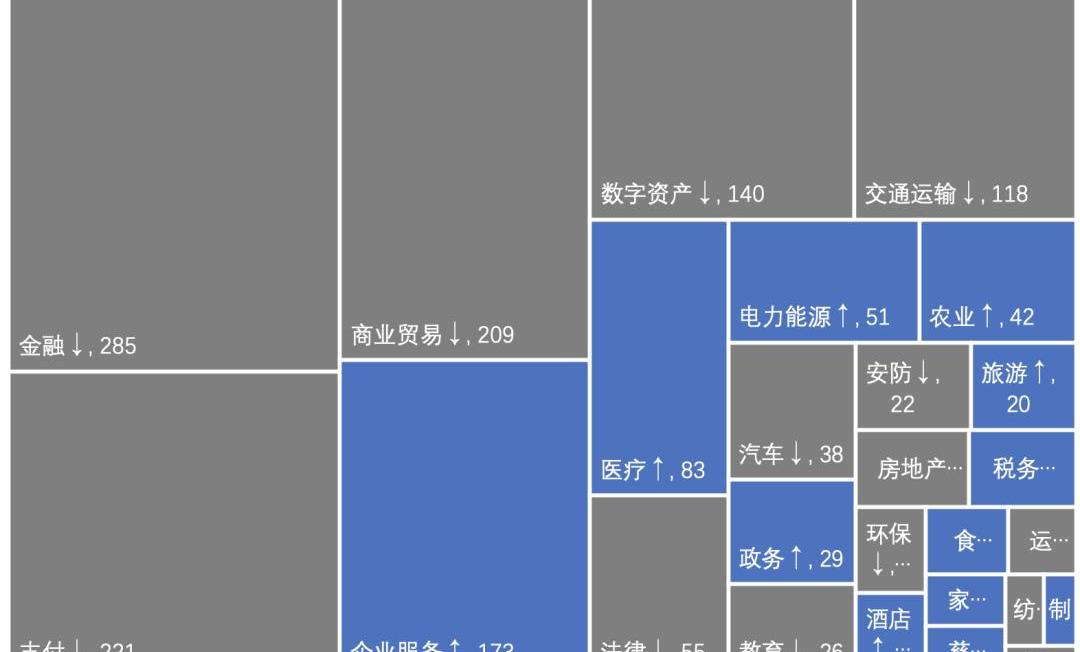 此外,企業服務、醫療、電力能源、農業、政務等剩余12個行業關注度則出現上升趨勢。其中,醫療由2019年的4.99%上升至6.60%,上升了1.61個百分點;電力能源由2.74%上升至4.06%,上升1.31個百分點;其余行業上升幅度不超過1個百分點。