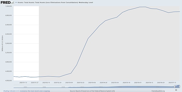 在全球經濟復蘇乏力的背景下,黃金和比特幣的“同步”看漲勢頭可能與美元加速走軟有關。 美元指數跌至94。美元貶值的部分原因是美聯儲不斷擴大的資產負債表和不斷增長的公共赤字。上周,在每周大幅購買370億美元抵押貸款支持證券后,美聯儲的總資產再次反彈至7萬億美元的水平。