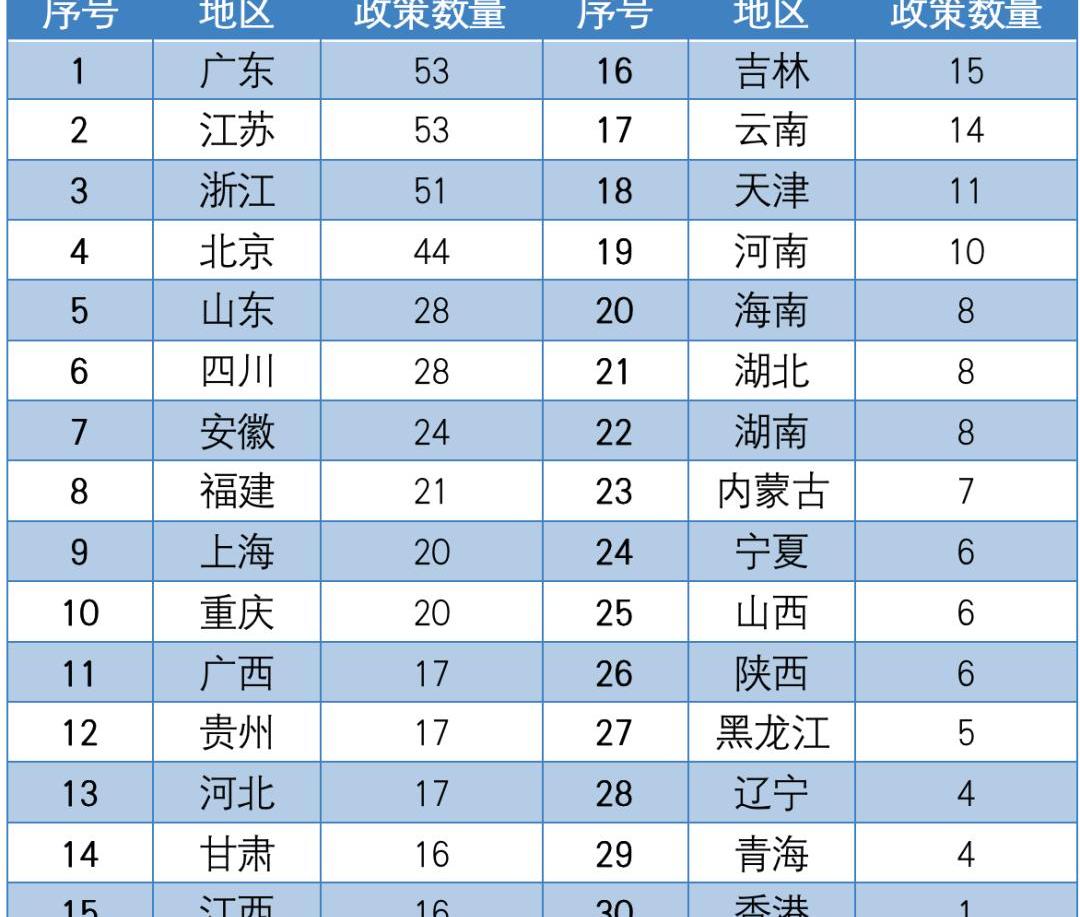 表:各地方政府出臺區塊鏈政策數量排行榜