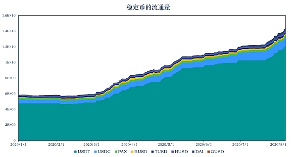 過去一周,USDT增發了6次,流通量增加9.3億。其中在以太坊上增發了4次,共4.8億USDT;在Tron上增發了2次,共4.5億USDT。USDC、PAX、BUSD、HUSD、DAI、GUSD的流通量分別增加2399萬、809萬、631萬、391萬、899萬、84萬。TUSD的流通量減少239萬。