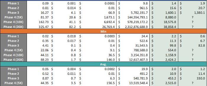 第四階段(5倍)方案意味著最高價格約為8,880美元,最低價格約為554美元,平均價格約為2,515美元。