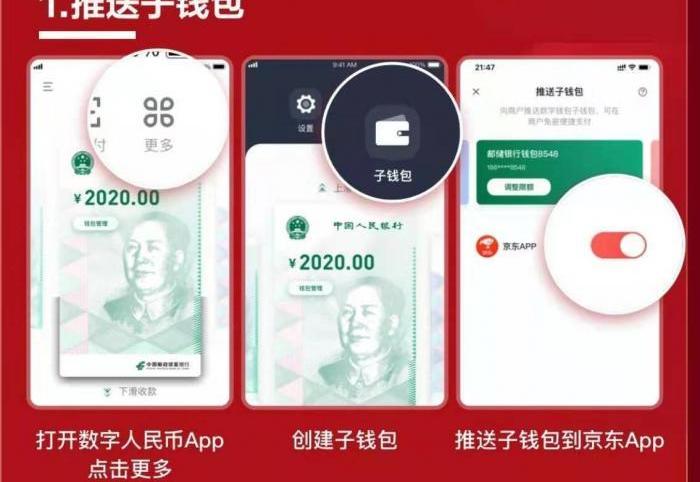 目前線上支付的一種方式就是推送子錢包。以京東為例,用戶在開立的對應銀行錢包下可以開立一個子錢包,如選擇京東后,再去打開京東APP就可以使用數字人民幣錢包進行線上支付,是即推即送。