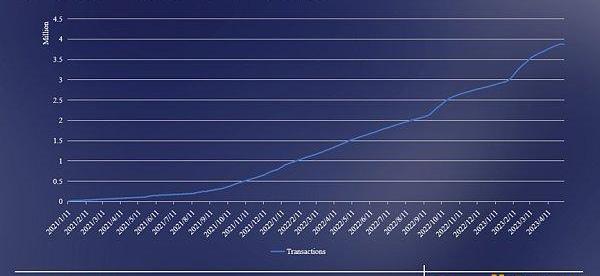 以上為Stacks中的累積交易增長情況,2023年2月1日至21日,Stacks網絡已經處理了336萬筆交易,與前一個月的113萬筆交易相比,環比激增223%;截止到5月9日,已累積處理了388.53萬筆交易。