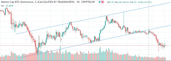 觀察比特幣從2018年1月至今的市值占比走勢圖不難發現,自2020年2月開始,比特幣的市值占比便向下跌破收斂三角,此后便一直在下方運行。這一次市值占比的跌破很大程度上源自于市場和投資者對于以太坊二級市場表現的認可以及對以太坊2.0的看好,讓存量資金更多的配置到了以太坊及其他相關幣種上。