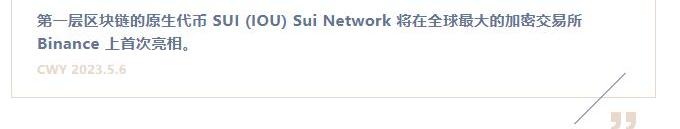 根據公告,幣安已于2023年5月3日上線Sui并開放其6種貨幣對的交易。