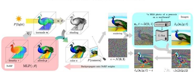 2022年谷歌曾發表過一篇論文《DreamFusion:Text-To-3DUsing2DDiffusion》,詳細概述了“DreamFusion”。簡單來看,“DreamFusion”是先使用一個預訓練2D擴散模型基于文本提示生成多個視角的3D視圖,再依據NeRF重建。