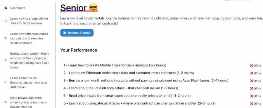 AlchemyUniversity是區塊鏈開發平臺Alchemy與其收購的教育初創公司ChainShot合作推出的Web3學習平臺AlchemyUniversity,訓練營內容包括密碼學、Solidity開發、智能合約安全、代理合約、委托調用等,既是一門Web3開發課程,也可作為一個用于構建技能和網絡的完整生態系統。