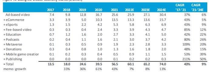 我們認為目前創造者經濟的市場規模為600億/每年,并且以每年9%的增長率遞增。到2024年,市場規模將達到750億,許多細分賽道都以雙位數的幅度進行增長。基于區塊鏈的社交媒體平臺旨在將社交媒體置于鏈上,提供隱私保護、個人數據所有權和生成內容控制這些優勢。大多數平臺還提供原生代幣,用于創作者內容的代幣化。然而,去中心化的社交媒體網絡仍處于萌芽階段,用戶體驗也不如傳統媒體那么豐富。