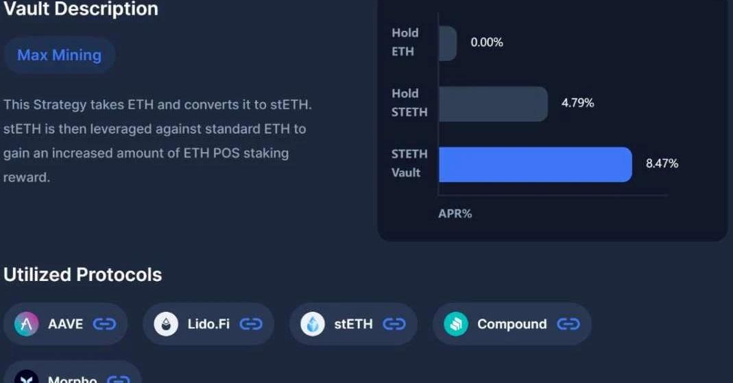 你還可以通過杠桿質押、收益聚合器和農場來提高收益。例如,InstadappLite提供8.5%的APY。它將ETH轉換為stETH,并將其杠桿化對標準ETH進行PoS質押以獲得更高的獎勵。