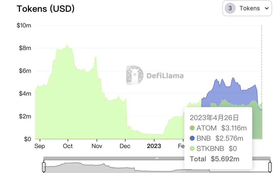 TVL:?569?萬美元,包括?312?萬美元的?ATOM?和?258?萬美元的?BNB,ETH?的質押現已暫停。