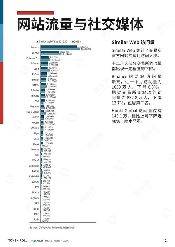 合約業務競爭加劇。Binance Futures日均成交量10.26億美元,增長遇到瓶頸。Binance JEX成交量慘淡,相比上月下降超過50%。合約賽道競爭激烈,交易量呈飽和趨勢,同時數字通證交易所還面臨CME、Bakkt等傳統機構的競爭。