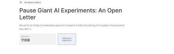 目前該公開信已獲得超過1100個人士支持,其中包括埃隆馬斯克、山姆·奧特曼、約書亞·本吉奧等知名人士。
