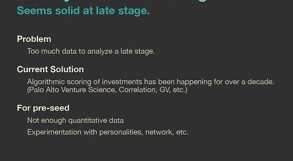 人工智能在項目選擇方面的歷史:通過算法打分已經有了一定的實踐,不過,在有大量數據的中后期投資階段是有效的,不過這種打分僅僅是超越平均水平而已。在種子期投資階段,沒有足夠的數據。