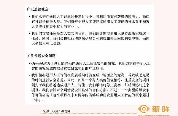 做中國的ChatGPT和做中國的OpenAl,是完全不同的兩件事。前者貼近為了流量追一個風口,后者的格局大得多得多。在OpenAI官網可以看到它的綱領和章程,其中有一條反競爭條款: