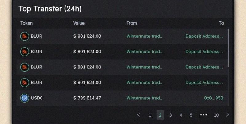 Wintermute在空投前后將500多萬美元的BLUR存入了幾個交易所的存款地址。