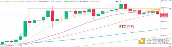 BTC 和主流幣昨天用緩漲的方式到達陰線起跌點 11820 附近,該下跌平臺存在套牢籌碼,昨晚和今早我連續提示做空機會,今天走勢如期下跌。BTC 小級別指標位置較低,這里大概率繼續維持低速波動,昨天文章提到(2-3天)日線級別 K 線會呈現陰陽相隔走勢,漲跌都不會持續該觀點保持不變,操作上主流幣短線秉持陰線進,陽線出的節奏,中短線趨勢單還得等一等,目前走勢類似 6 月18-19日,在看到日線縮量十字星后,震幅進一步縮小后才會選擇變盤。短線可以繼續關注 ATOM,LINK,XTZ 等高人氣幣種。