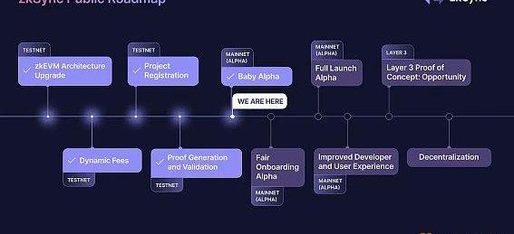 除了這輪周期VC們都很喜歡zk敘事外,零知識證明項目也確實比較燒錢,能寫零知識的開發人員在全球都非常有限,相關項目的進展也都比較慢。zkSync是最早上線主網的,但在后來開發速度被趕超,隨著Starknet、Polygon在zk領域的持續發力,zkSync在今年7月趕鴨子上架宣布百日誓師計劃,終于于**今年10月上線zkEVM主網BabyAlpha版本。**據官方消息,其下一個milestone,是faironboardingalpha,即開發者可在zkSync2.0上部署合約,但對外用戶關閉,預計年底能fullalpha,即對所有用戶全部開放。