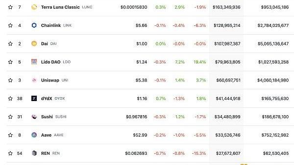2、過去24小時去中心化交易所的交易量15.75億美元
