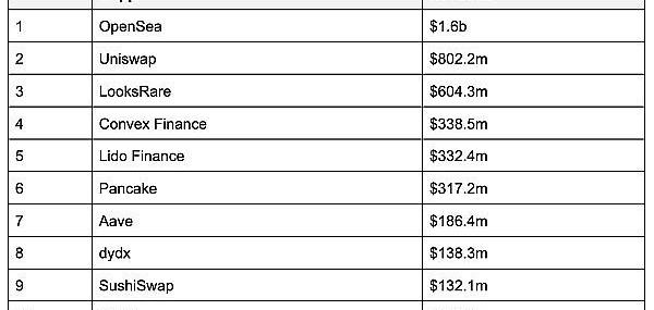 表3:2022年dAppRevenue排序