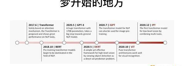 這篇論文發表之后,帶來一個NLP的模型,叫Transformer,一經發布便快速屠榜,接著很快有了BERT模型,有了OpenAI的GPT-3模型。在視覺領域,有DERT模型,iGPT模型,以及上面提到的VisionTransformer。