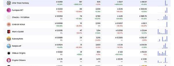 24小時NFT交易量、交易量前十項目數據來源:Coinmarketcap
