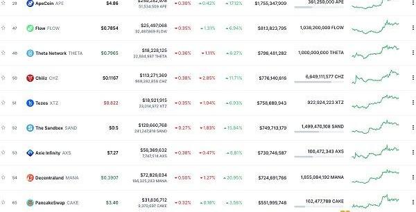 NFT總市值、市值排名前十項目數據來源:Coinmarketcap