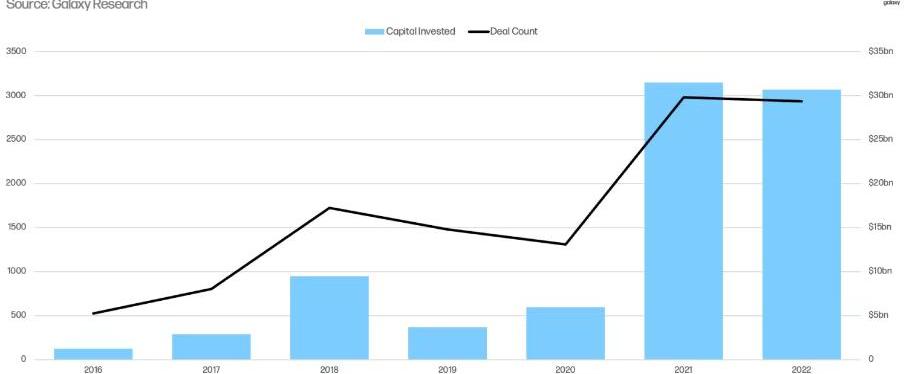 就投資交易的筆數和金額而言,2022年排在了加密貨幣VC史上的第二名,僅次于2021年。