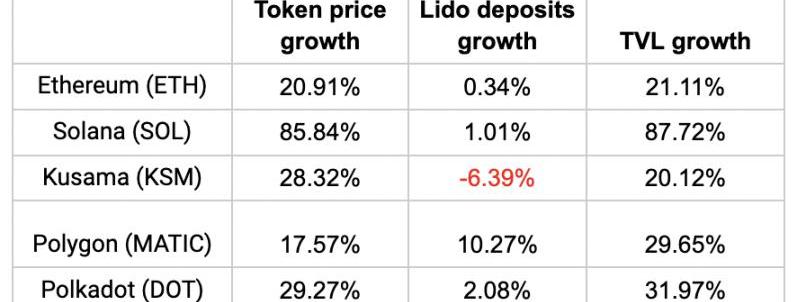 LidoTVL的上漲究其原因,是因為LidoTVL的所有原生代幣價格上漲,Lido質押存款也上漲,推動LidoTVL在上周上漲: