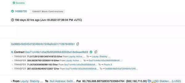 6月18日,一個以0x2291為開頭的多簽地址在Liquity上被清算了大約6100萬美元,清算該頭寸的機器人僅通過該筆清算就獲得了359ETH,而這一清算金額也比2021年的最大清算額高出了69%。