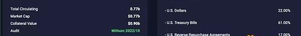 最新的報告于2022年11月30日公布,儲備凈資產市值為226.5億美金,超過當天流通量的223.8億美金。其儲備資金內包含現金、美國國庫券和美國國債抵押逆回購協議,風險較低。